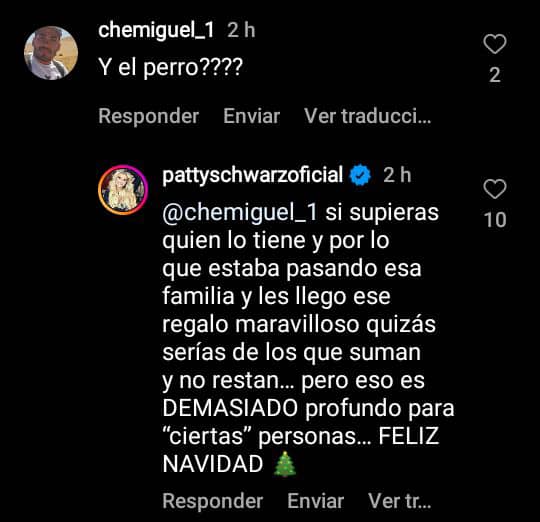 A través de su cuenta de Instagram, Schwarzgruber respondió un comentario realizados por los usuarios que le preguntó "¿Y el perro?", revelando que las cosas fueron mal interpretadas, ya que el acto se realizó con buenas intenciones.