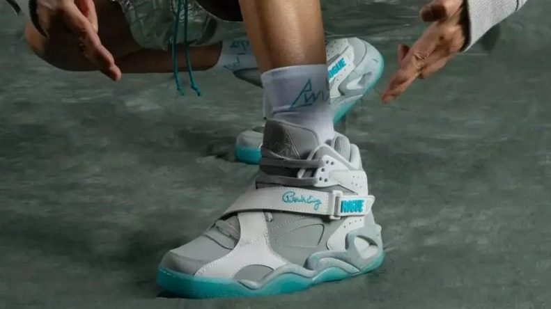 En términos de diseño, las zapatillas cuentan con una parte superior de cuero y piel ‘nobuck’ (piel curtida de vaca, con aspecto aterciopelado) en gris y blanco con detalles en azul, mientras que la parte blanca del zapato es completamente reflectante y la suela azul brilla en la oscuridad, dándole a los zapatos un toque único.