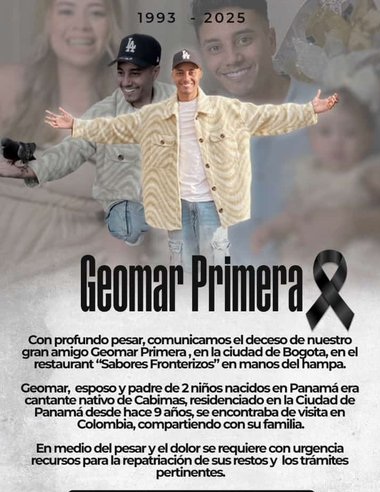 Espectáculos.- Falleció el cantante cabimense Geomar Primera, mejor conocido como "Geo Primera", de 30 años de edad, este martes 21 de enero en la ciudad de Bogotá, Colombia, tras presuntamente recibir una bala perdida cuando se encontraba compartiendo con su familia.