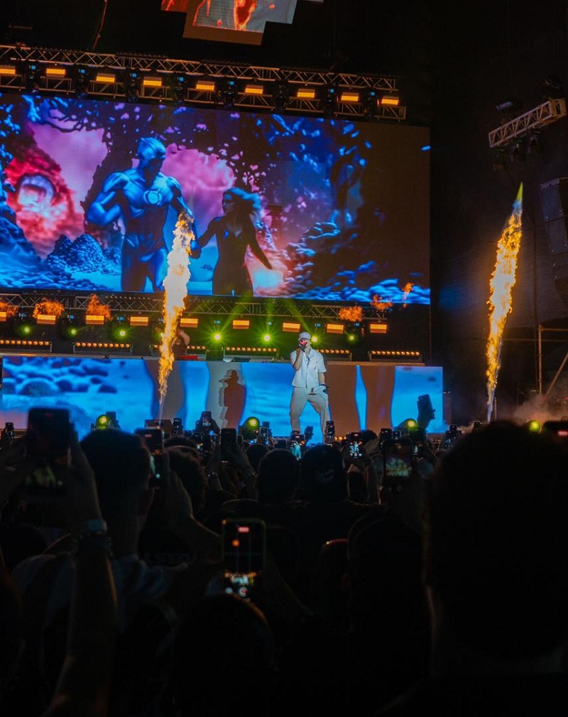 Los fans se dieron cita desde tempranas horas para recibir a El Ousi y disfrutar de una velada llena de ritmo y pasión. Los colores rosa protagonizaron el vestuario de los asistentes y la iluminación del espectáculo, creando un ambiente visualmente impactante que complementó la extraordinaria actuación del cantante, que subió al escenario a las 11:00 p.m. con su tema “Goddess”.