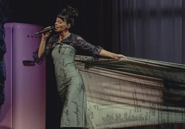 Luego de permanecer por siete años fuera de la música, la cantautora sorprendió al público al presentarse con un vestido exclusivo que no solo era una elección estética, sino que además, estaba confeccionado con recibos de compras que había realizado su exesposo a otras mujeres durante su matrimonio, imágenes que se viralizarón rápidamente en redes sociales.