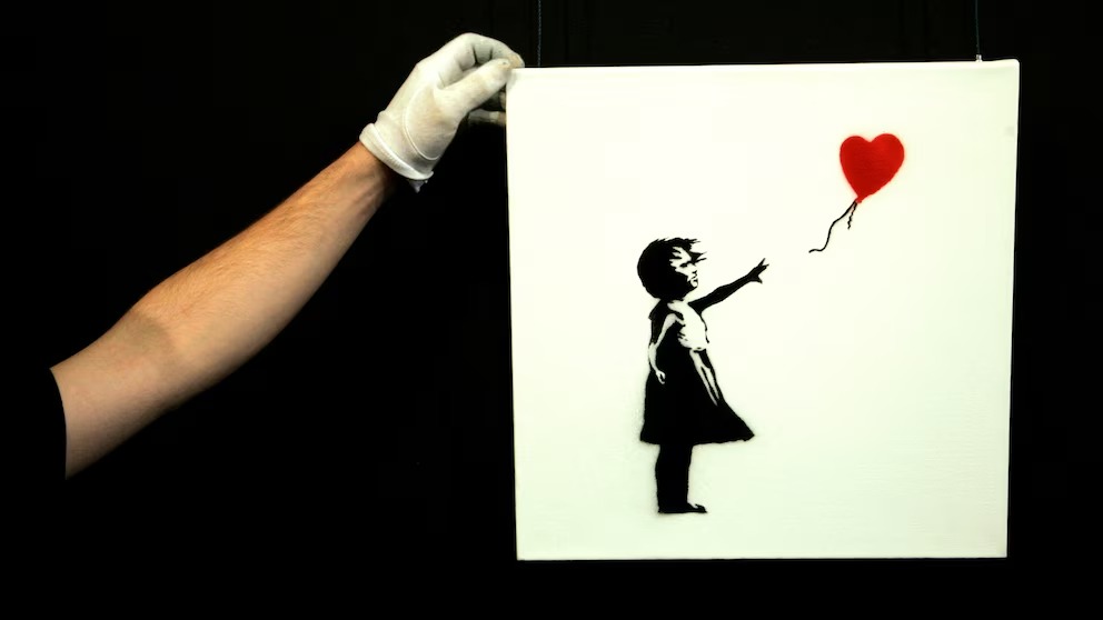 Su obra más célebre, Niña con globo, fue vendida en una subasta en Londres en 2018 por 1,4 millones de dólares y se autodestruyó parcialmente mediante una trituradora oculta en el marco minutos después del remate.