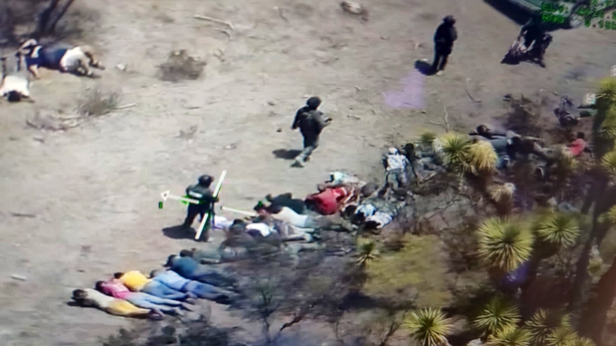 La Fiscalía explicó en un comunicado que luego de un despliegue coordinado de fuerza aérea y terrestre en la ciudad de Matehuala, San Luis Potosí, rescataron "a decenas de personas privadas de su libertad, entre los que se encuentra un importante número de migrantes de nacionalidad extranjera".