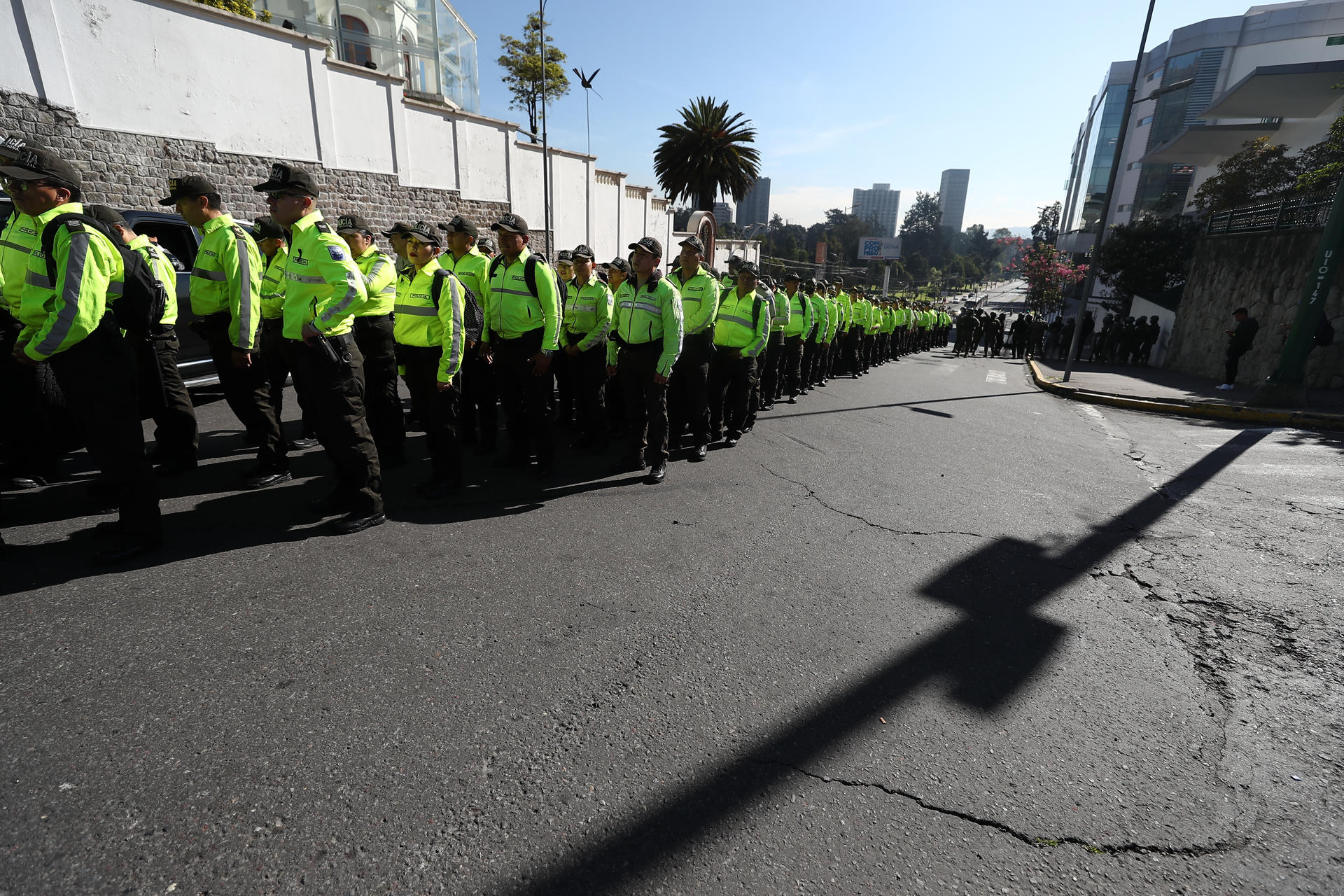 Decenas de militares y policías han cercado la Asamblea Nacional de Ecuador, institución disuelta este miércoles, cuando estaba prevista la segunda jornada de debate en el juicio político de censura contra el jefe de Estado, acusado de presunto peculado.