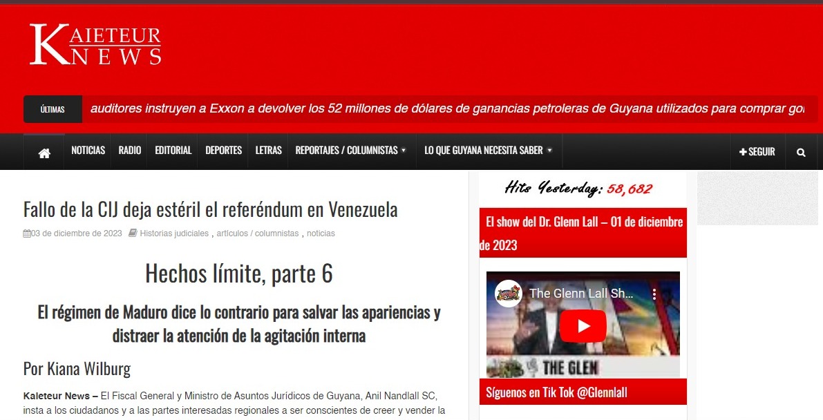 Asimismo, Kaieteur News Online informó como el fallo de la CIJ "deja estéril el referéndum en Venezuela", cosniderando que este proceso busca "galvanizar" el apoyo del pueblo venezolano para tomar acciones unilaterales que resultarían en la anexión de la región del Esequibo.