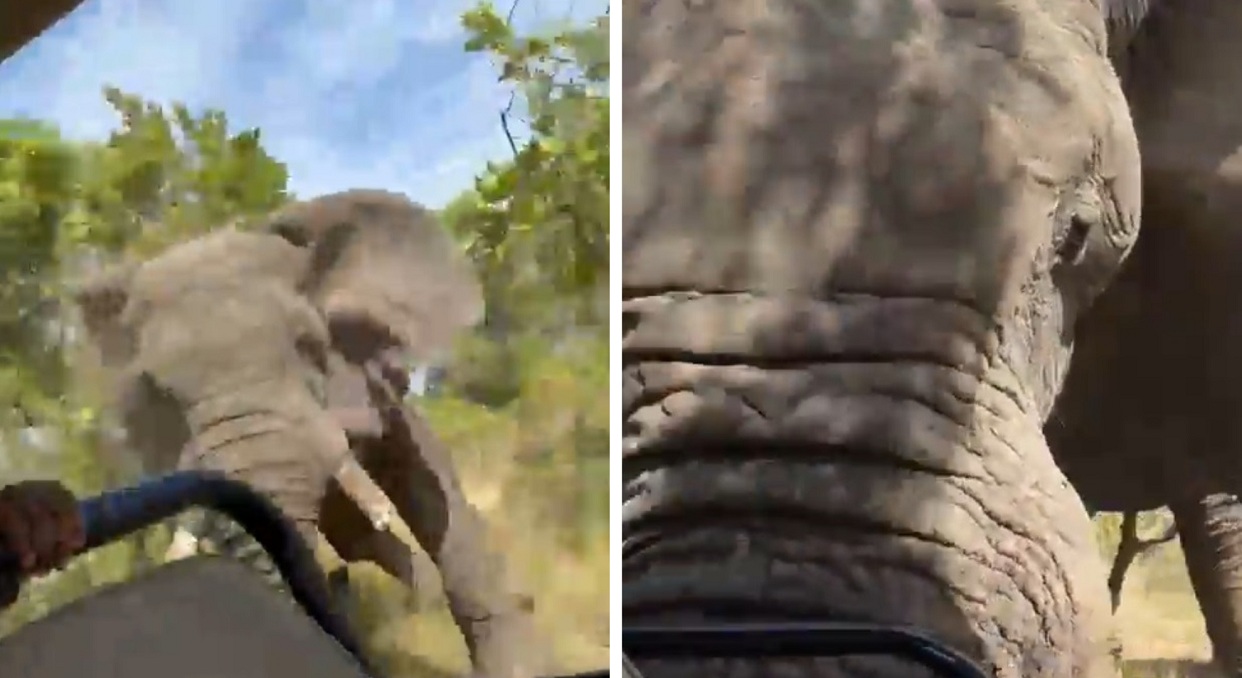 En el vídeo, grabado por uno de los seis turistas que realizaban el recorrido, se puede ver cómo el elefante corre detrás del vehículo y, luego de alcanzarlo, lo empuja hasta volcarlo.