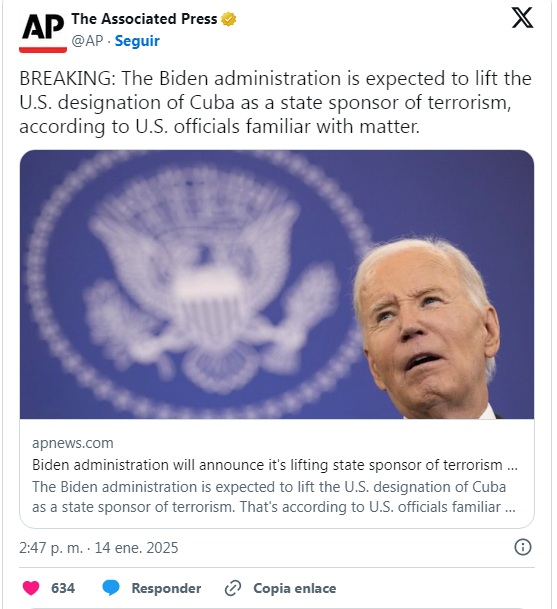 Sin embargo, AP advierte que la medida del Ejecutivo de Biden podría ser anulada una vez asuma Donald Trump la presidencia el próximo 20 de enero, debido a que su secretario de Estado será Marco Rubio, un político radical que adversa al gobierno cubano y promueve sanciones contra la isla.
