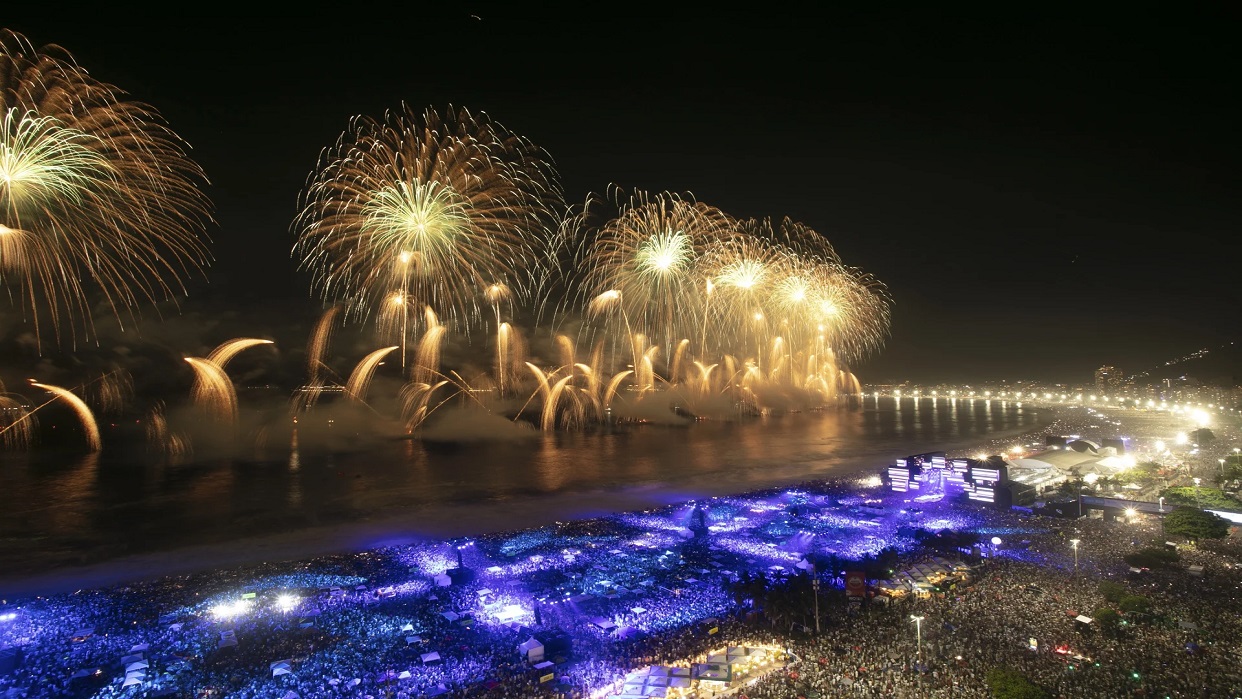 Además de las 2,6 millones de personas disfrutando de los fuegos de artificio, de un espectáculo con drones y de una maratón de conciertos musicales en tres escenarios en Copabacana, otras 2,5 millones participaron en las fiestas organizadas por la alcaldía en otras diez playas y plazas públicas.