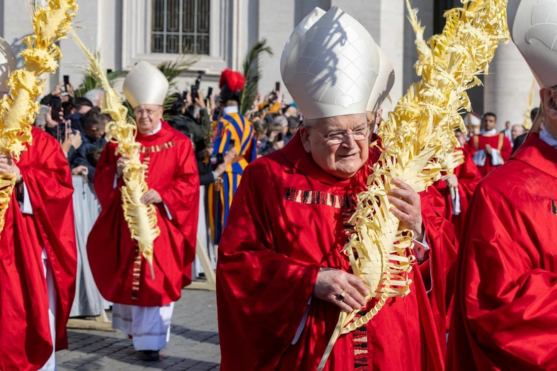 El Papa participó en la procesión desde el obelisco central de la plaza vaticana hasta el altar, acompañado por cardenales, obispos y cientos de sacerdotes que concelebraron la Eucaristía junto a religiosos y miles de fieles, portando ramos de olivo y palmas.