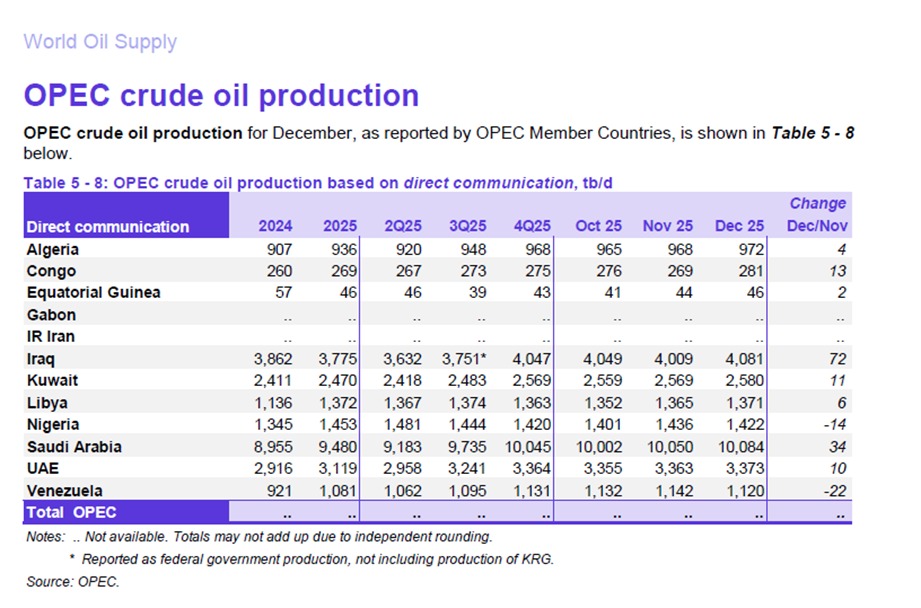 Documento que muestra que Venezuela alcanzó durante el mes de diciembre 2025 una producción promedio de 1.120.000 barriles diarios