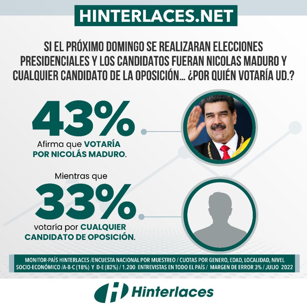Hinterlaces: 43% de los venezolanos afirmaron que votarían por el presidente Maduro
