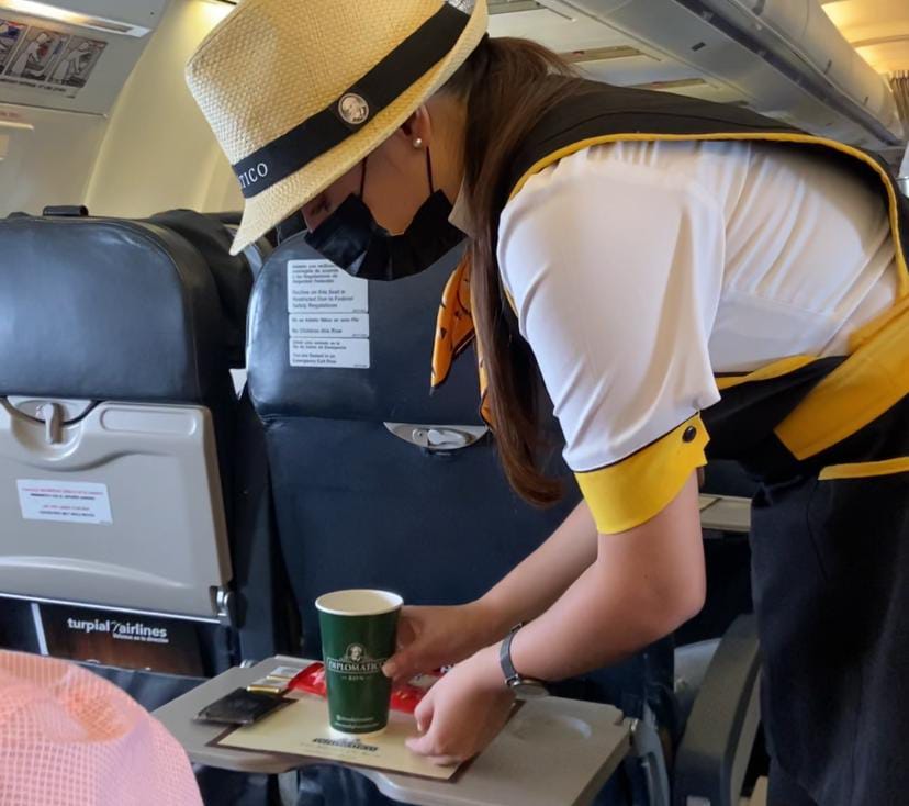 Los viajeros degustaron de Ron diplomático en su presentación Reserva Exclusiva un complejo y elegante ron cuidadosamente elaborado a partir de mieles de caña de azúcar, delicadamente destilado en antiguos alambiques de cobre y envejecido hasta 12 años.