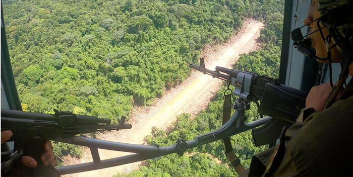 "La FANB inutiliza pista clandestina construida por grupos asociados al narcotráfico, la minería ilegal y la trata de personas, en medio de la espesura de la Reserva Forestal de Imataca (ubicada entre los estados Bolívar y Delta Amacuro)", indicó en Twitter el Comandante Estratégico Operacional de la FANB, Domingo Hernández Lárez.