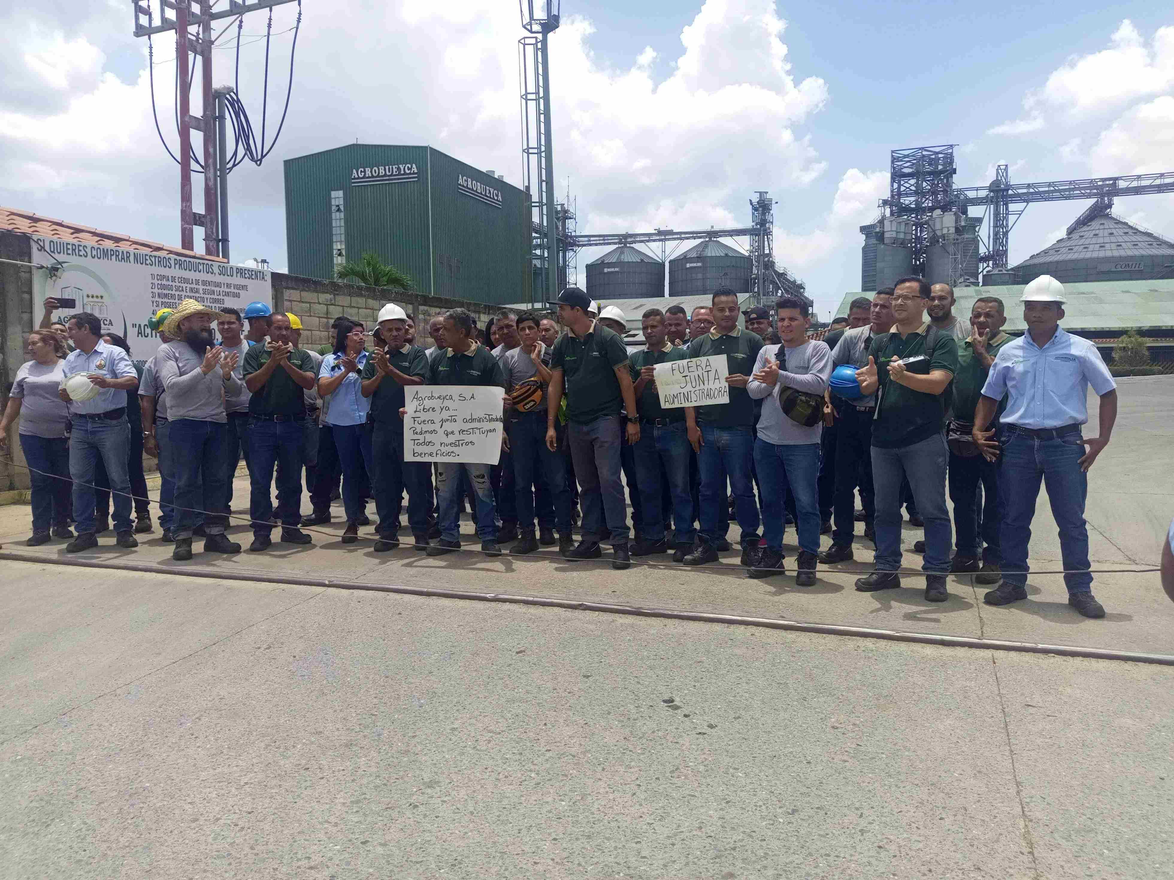 Aragua.- Trabajadores de Agrobueyca, ubicada en la zona industrial de Santa Cruz de Aragua se concentraron este martes, en las afueras de la compañía solicitando la reactivación de las líneas de producción.