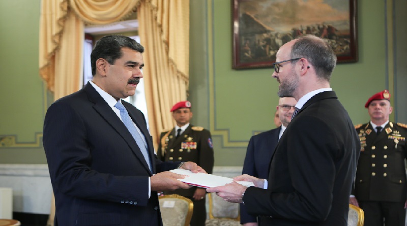 Los embajadores fueron recibidos por el Mandatario venezolano en el palacio presidencial de Miraflores en Caracas, donde les dio la bienvenida el ministro de Relaciones Exteriores, Yván Gil.