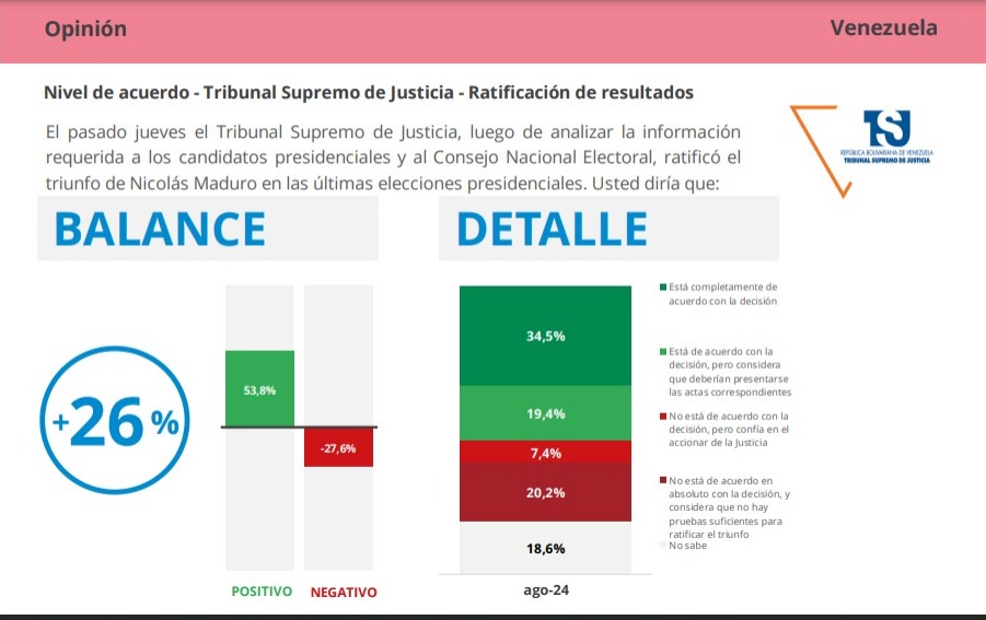 El estudio agrega que entre quienes no están de acuerdo, 36,7 % considera que el TSJ debería presentar las pruebas que respalden la sentencia