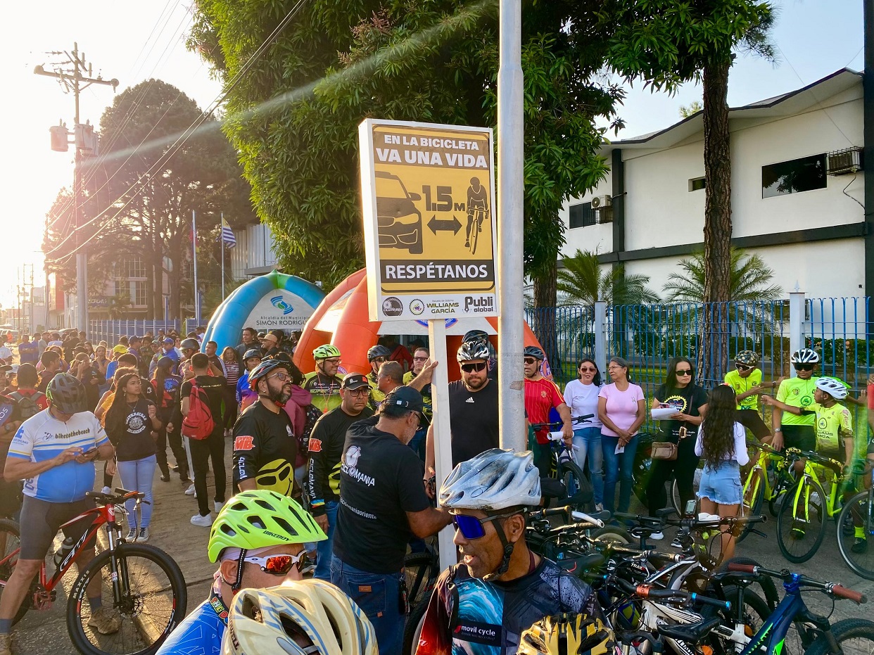 País.- En horas de la tarde de este jueves 30 de enero, con una participación masiva y para promover la seguridad vial, la alcaldesa del municipio Simón Rodríguez, Lilys Osuna, dió inicio a la Campaña de Concientización sobre el respeto al ciclista del 1.5 metros de distancia.