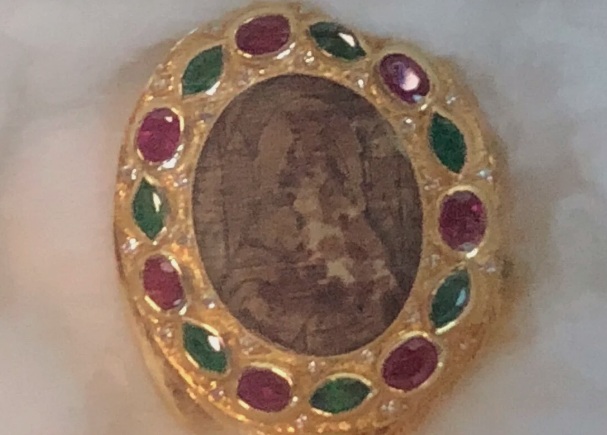 La reliquia de la Virgen de Coromoto es una pequeña imagen (mide 27 mm por 22 mm), grabada sobre pergamino (papel de seda).