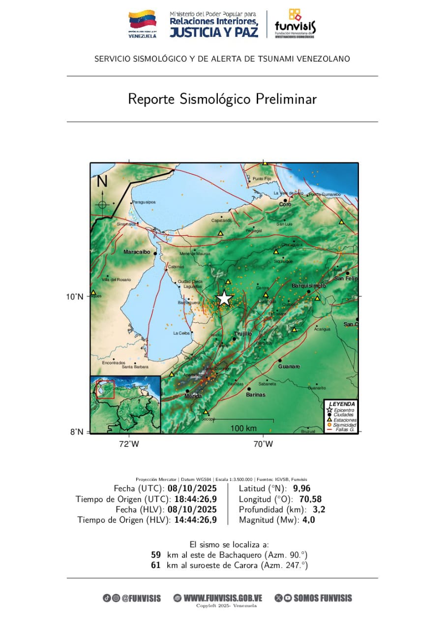 Es de recordar que Venezuela es una región sísmicamente activa, por lo que exhorta a la población a mantener la calma y seguir las recomendaciones de prevención ante posibles réplicas.