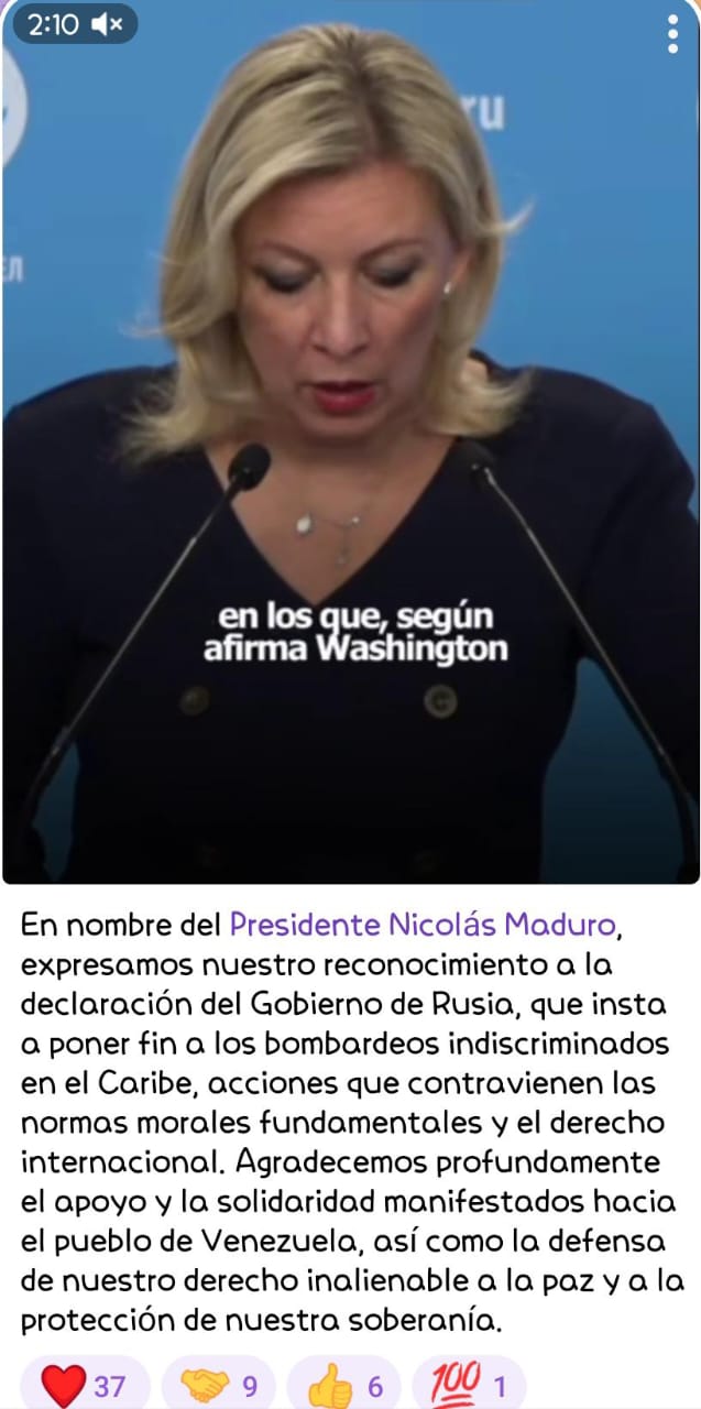 Venezuela agradece el apoyo de Rusia ante los bombardeos indiscriminados en el Caribe