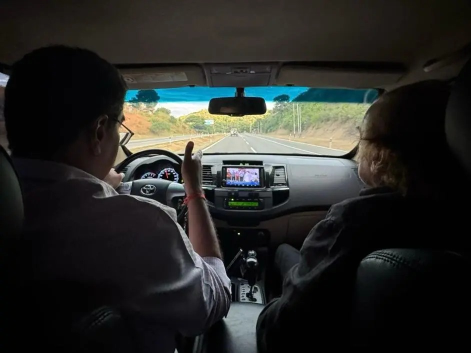 Al acto ha terminado. Cercado y abrazado por los comuneros que desean sacarse una foto con él, el presidente me hace una señal discreta indicándome que me acerque a su vehículo estacionado a unos cinco metros. Consigue por fin liberarse del efusivo acoso popular y se sube al coche en el puesto de conductor. Me subo a su lado por la puerta opuesta. Ningún guardaespalda viene con nosotros. El presidente arranca y durante una hora y media vamos a poder conversar tranquilos sobre este momento crucial que está viviendo Venezuela.