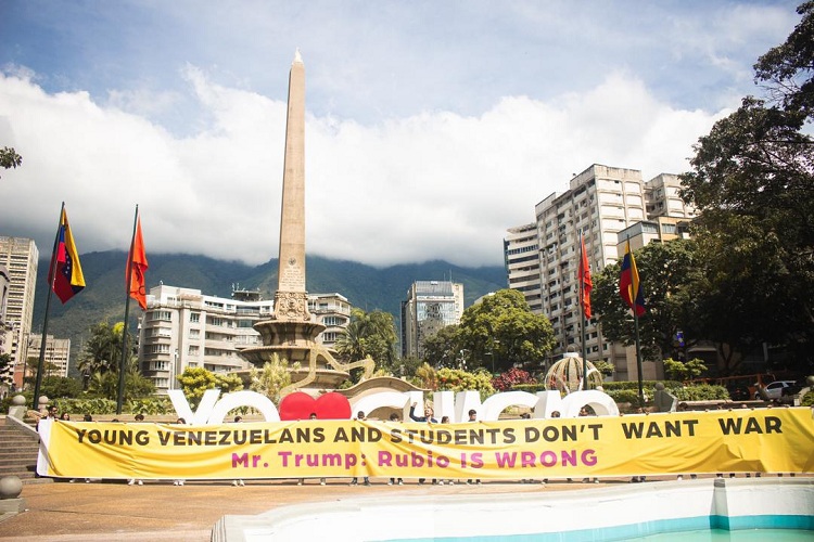 Finalmente el pronunciamiento cerró con un mensaje claro de rechazo a cualquier escalada bélica. Los jóvenes y estudiantes desplegaron una pancarta de 30 metros frente al icónico monumento de la Plaza Altamira, con la frase “Young Venezuelans and Students Don’t Want War. Mr Trump: Rubio is Wrong”, lo que se traduce como, “Los Jóvenes y Estudiantes Venezolanos No Queremos Guerra. Sr. Trump: Rubio Está Equivocado”.