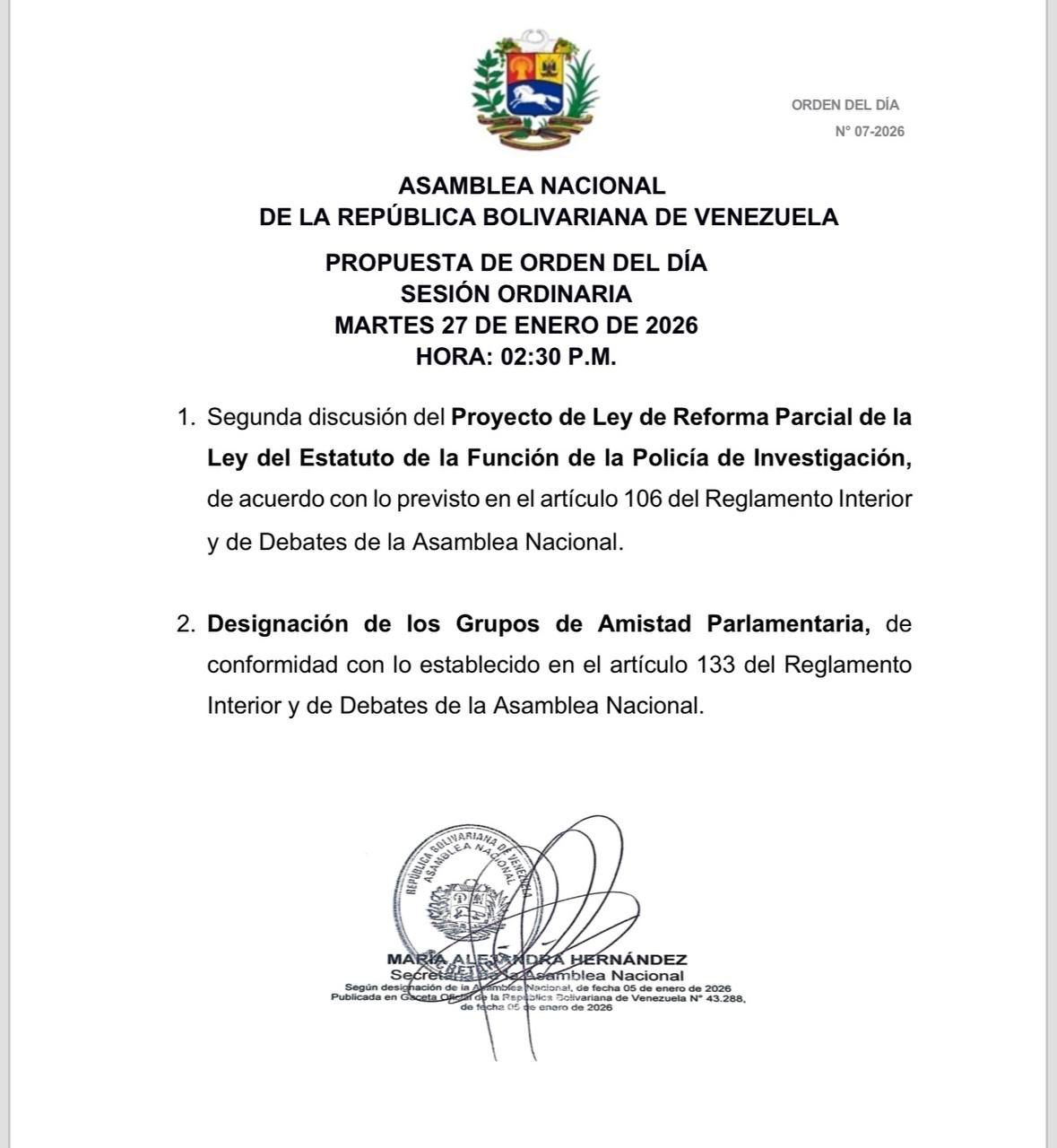 Los parlamentarios iniciarán la segunda discusión del Proyecto de Ley de Reforma Parcial de la Ley del Estatuto de la Función de la Policía de Investigación. Esta propuesta busca optimizar las normativas que rigen el desempeño de los cuerpos de seguridad e investigación en el territorio nacional.