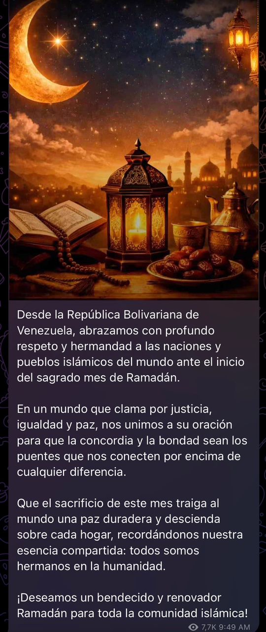 Asimismo, señaló la importancia de este periodo de ayuno y reflexión para millones de fieles. En el mensaje, la funcionaria indicó que la nación abraza con hermandad a las sociedades musulmanas y expresó su deseo de que “la concordia y la bondad sean los puentes que nos conecten por encima de cualquier diferencia”.