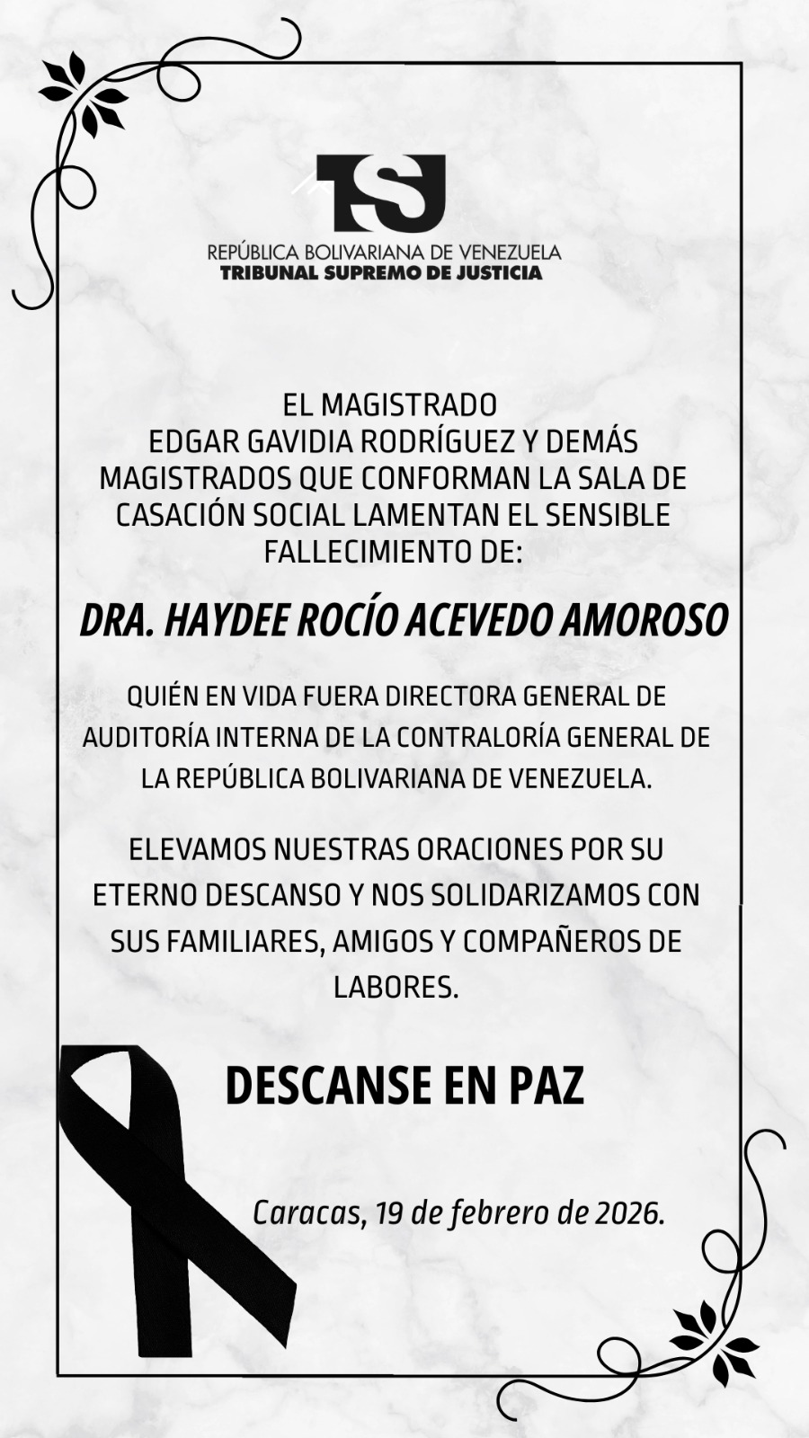 País.- La Junta Directiva Notitarde lamenta el sensible fallecimiento de la Dra. Haydee Rocío Acevedo Amoroso, quien en vida fue la directora general de Auditoría Interna de la Contraloría General del país. Nos unimos al dolor de su familia y seres queridos en este difícil momento.