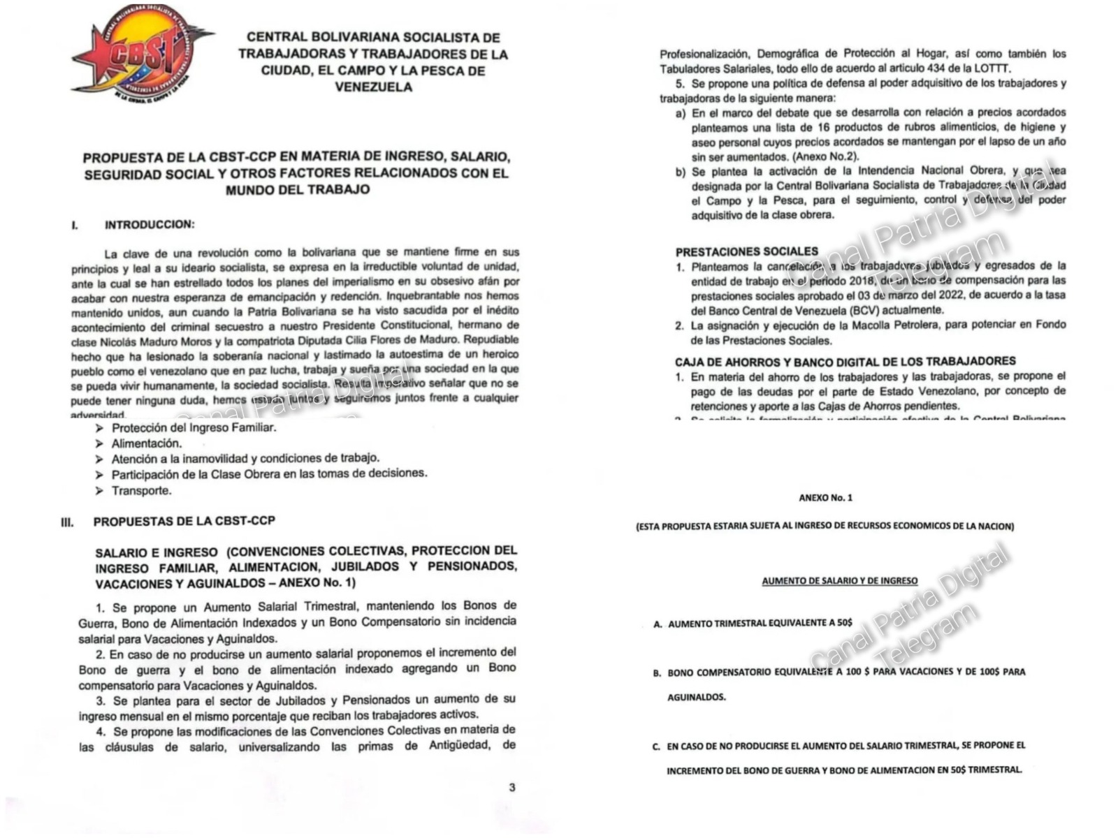 Y si el salario mínimo no se ajusta, la organización propone elevar en 50 dólares trimestrales el bono de guerra económica y el bono de alimentación. Pide, además, mantener un bono compensatorio para vacaciones y aguinaldos.