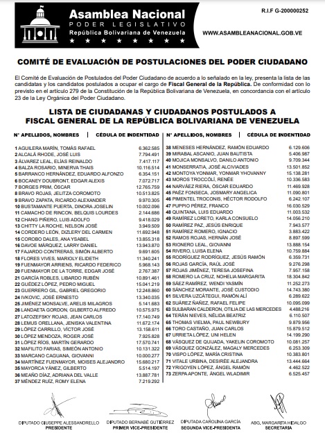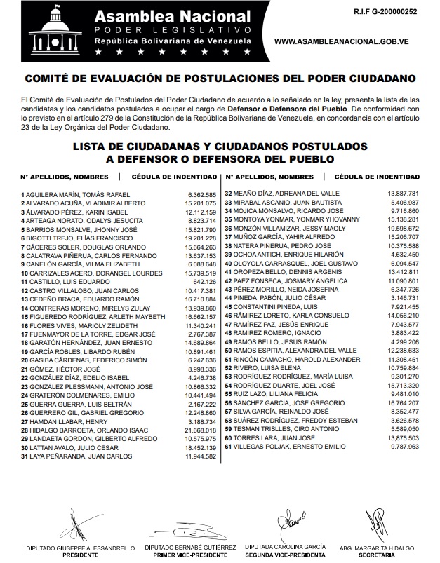 A través de sus redes sociales indicaron que esta publicación se da de conformidad con lo previsto en el artículo 279 de la Constitución, en concordancia con el con el artículo 23 de la Ley Orgánica del Poder Ciudadano.
