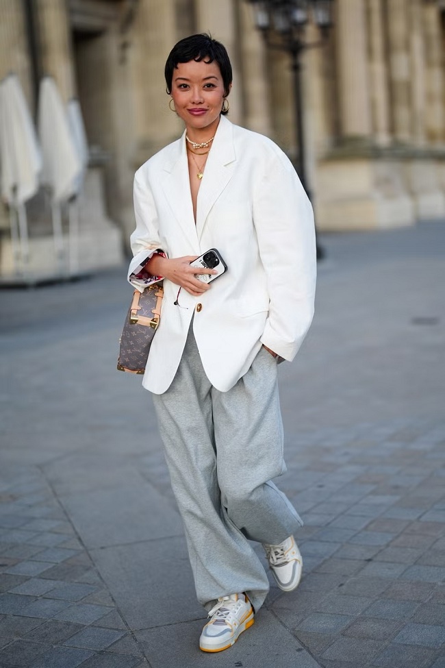 Vestir prendas amplias tanto arriba como abajo desequilibra las proporciones rápidamente. Para mantener un look armónico, es esencial que una de las piezas sea más ajustada o definida: si el pantalón es ancho, una prenda más ceñida en la parte superior es ideal.