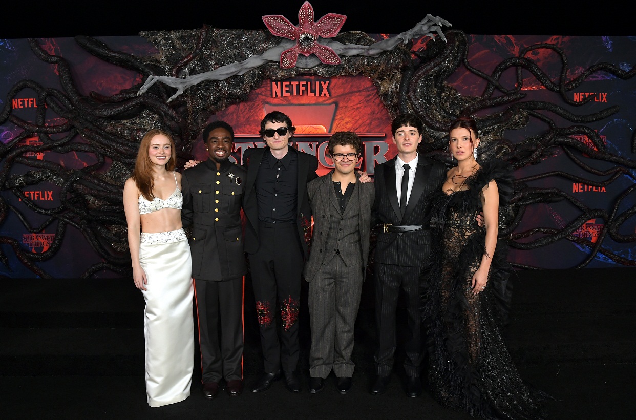 De izquierda a derecha: Sadie Sink, Caleb McLaughlin, Finn Wolfhard, Gaten Matarazzo, Noah Schnapp y Millie Bobby Brown en la premiere de la temporada 5 de la serie en Hollywood, el pasado 5 de noviembre