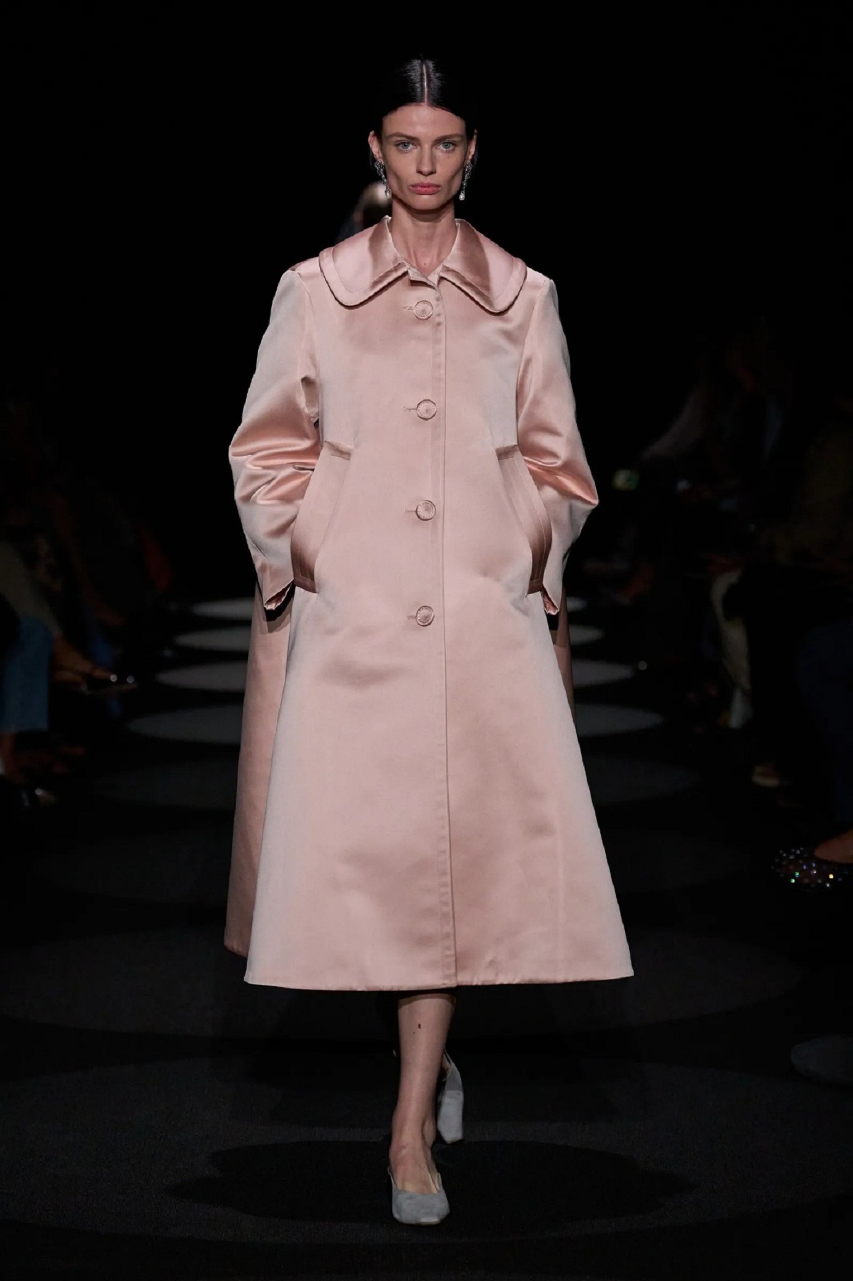 Las referencias a épocas anteriores siguen presentes, pero reinterpretadas con sensibilidad contemporánea. El regreso de inspiraciones colegiales, prendas de herencia británica, minifaldas de tablas, gabardinas y sastrería clásica convive con una estética más dramática, volumétrica y barroca.