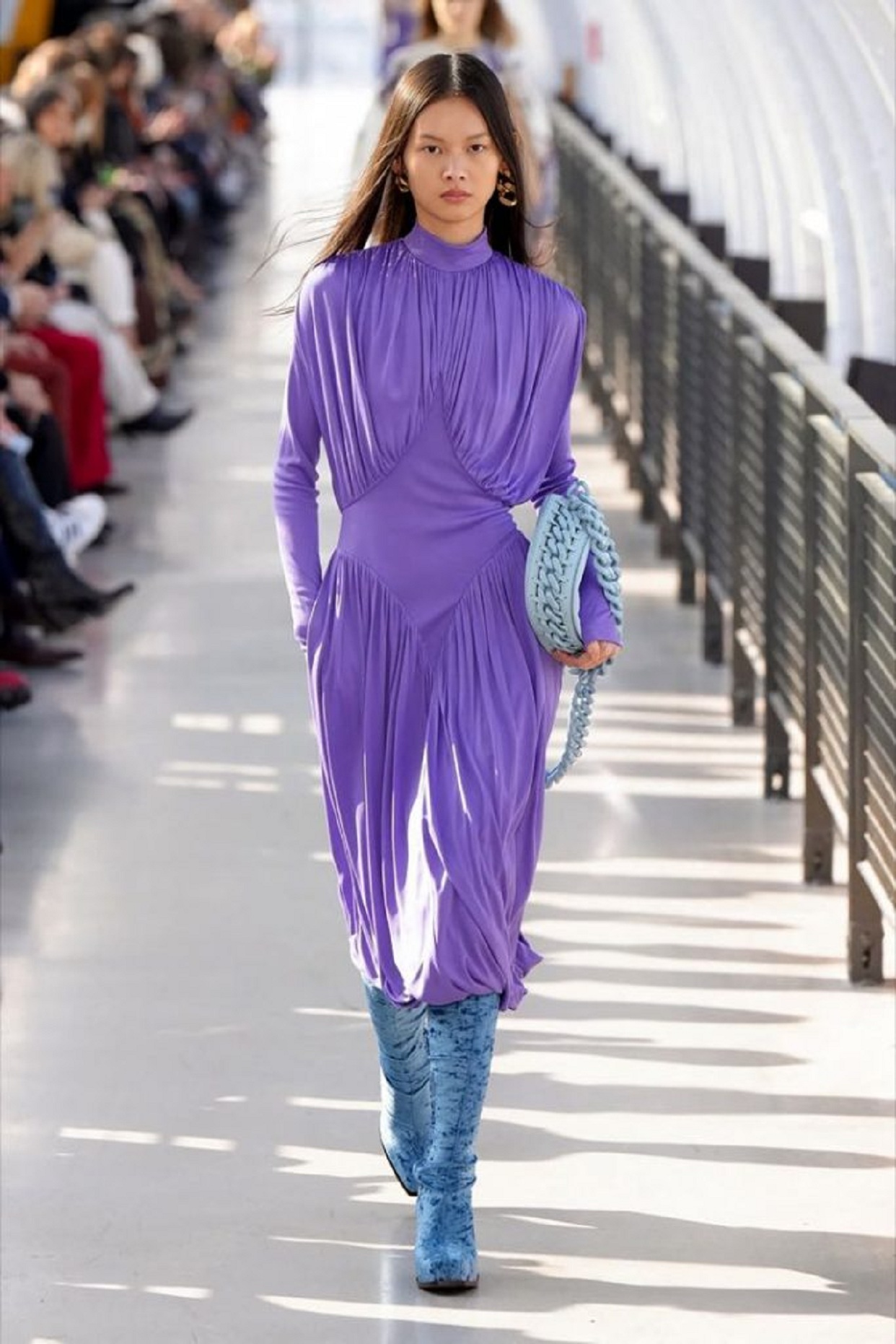 La tendencia bautizada como “haunted cabaret” (o “romanticismo oscuro”) propone una moda menos pulida, con aires teatrales, capas opacas o semitransparentes y vestidos fragmentados, que apelan al dramatismo y a lo sensorial, y que recuerdan a estéticas como las impulsadas hace décadas por McQueen.