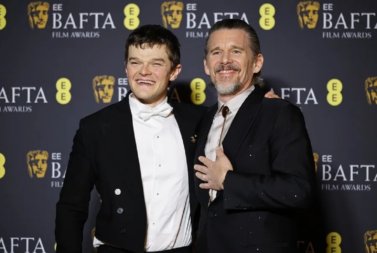 El actor británico Robert Aramayo posa con Ethan Hawke, tras ganar el premio BAFTA a estrella revelación . EFE/Tolga Akmen