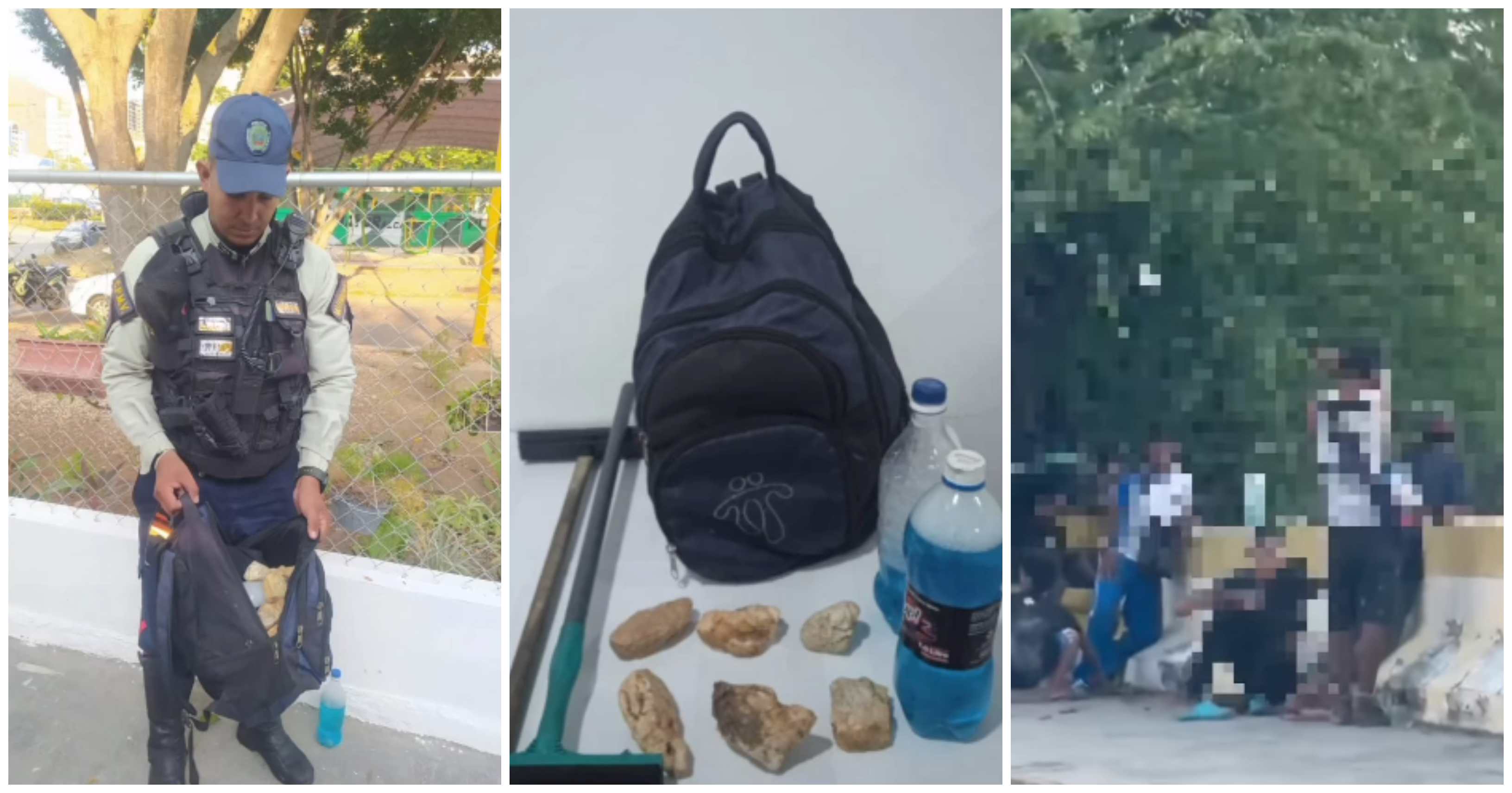 La policía les incautó un bolso lleno de piedras junto a otros implementos (jabón líquido y limpiacristales) que daban cuenta de que presuntamente se dedican a limpiar los vidrios de los autos.