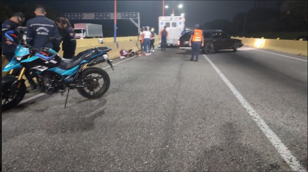 Sucesos.- La madrugada de este lunes, se registró un accidente vial en el Distribuidor San Blas, sentido Valencia-Guacara involucrando a un vehículo tipo motocicleta, color azul, que cobró la vida de dos ciudadanos.