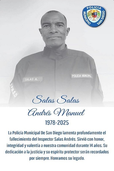 Así mismo, La Policía Municipal de San Diego emitió un comunicado a través de sus redes sociales donde lamenta la muerte del inspector, quien sirvió a la institución durante 14 años.