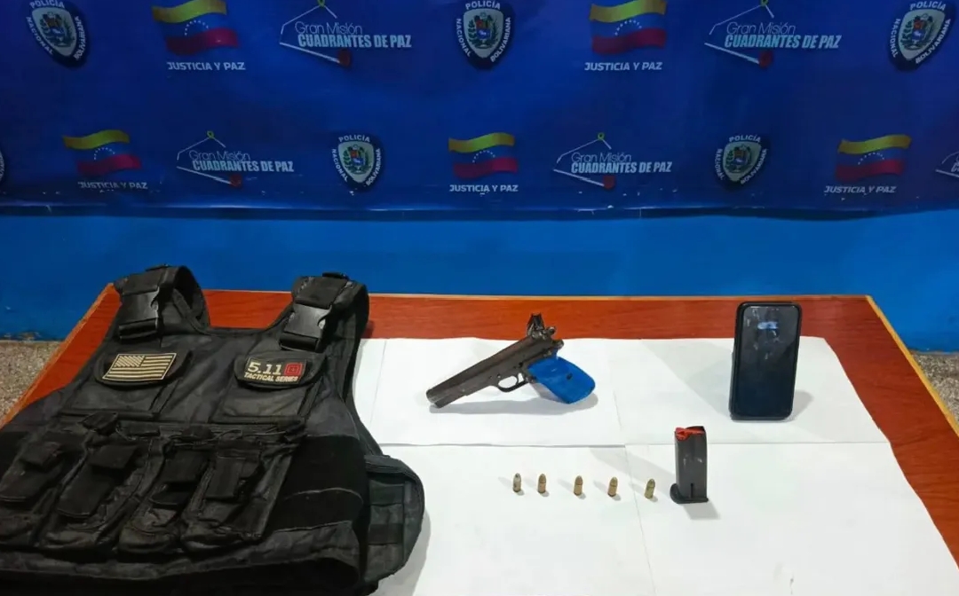 Durante la revisión física en la estación, los oficiales incautaron una pistola Browning calibre 9mm con cinco proyectiles sin percutir, un teléfono celular y un chaleco balístico que Aular ocultaba bajo su ropa. Al verificar los datos en el Sistema de Investigación e Información Policial (Siipol), los funcionarios detectaron que Aular posee dos órdenes de captura vigentes, emitidas en 2023 y 2026, por los delitos de agavillamiento y homicidio intencional calificado con alevosía.