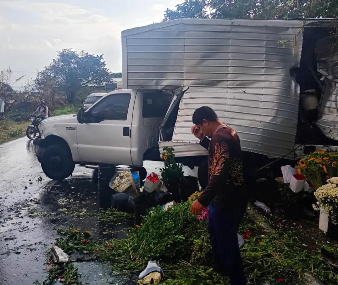 El chofer del microbús, un hombre de 29 años de edad, se encontraba atrapado entre la carrocería debido a la magnitud del impacto