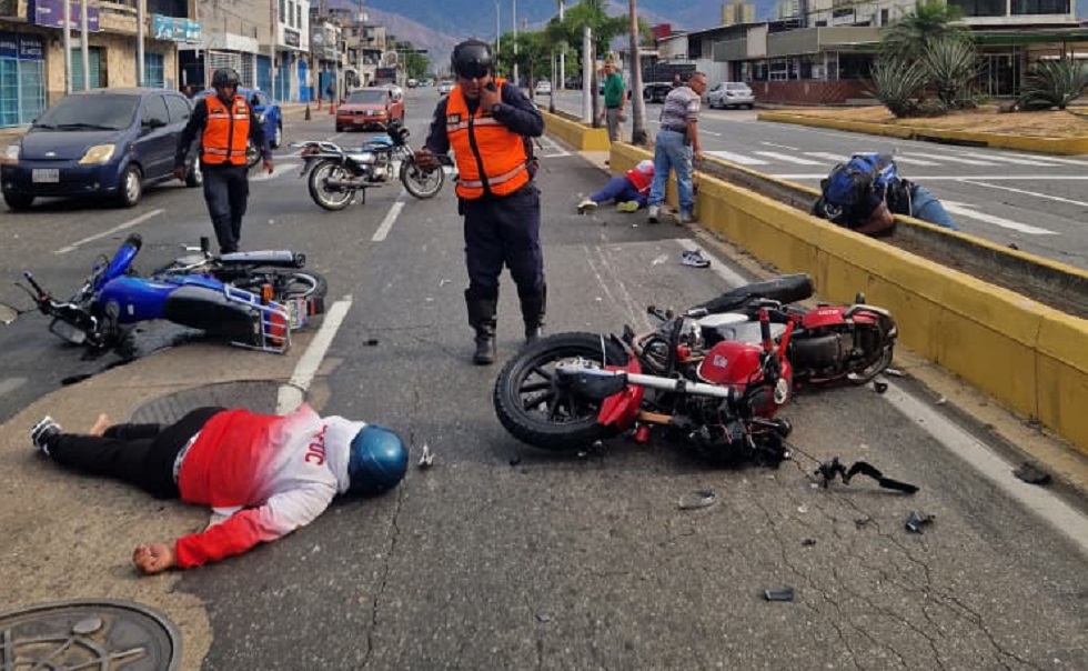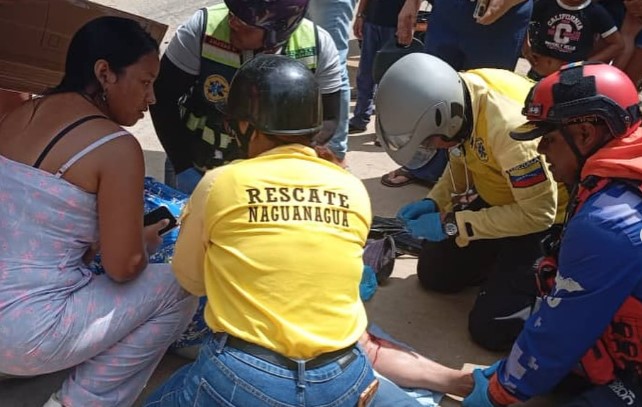En otro hecho, pasada las 3:00 p.m. dos ciudadanos sufrieron un accidente en el kilómetro 171 de la Autopista Valecia- Puerto Cabello, adyacente al Puente Bárbula. Se trató de una mujer y un hombre a borde de una motocicleta que colisionó con un vehículo tipo camioneta, este último se dio a la fuga. En este sentido, los paramédicos atendieron a los lesionados, quienes presentaron escoriaciones múltiples en el cuerpo, siendo trasladados al Hospital General Nacional Dr. Ángel Larralde por unidad multipropósito de INVIALCA.