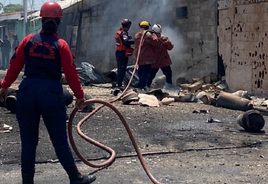 Sucesos.- Funcionarios del Cuerpo de Bomberos y Protección Civil del estado Cojedes, acudieron al llamado de emergencia en la comunidad El Chuchango de la ciudad de San Carlos, debido a una explosión masiva de cilindros de gas.